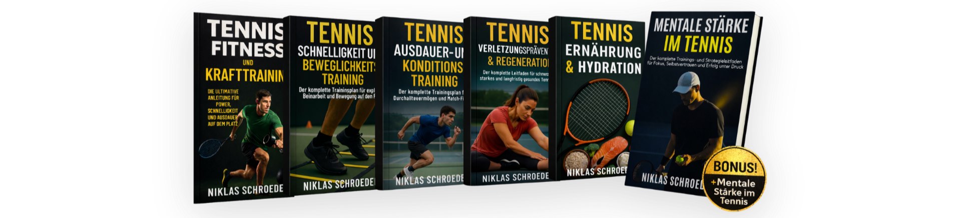 6 spezialisierte Tennis-Trainingsbücher.